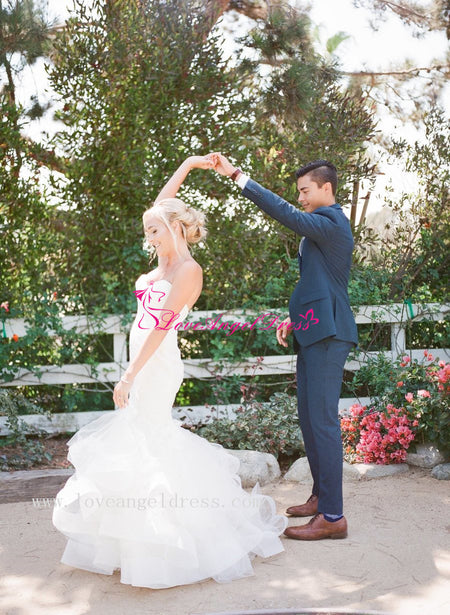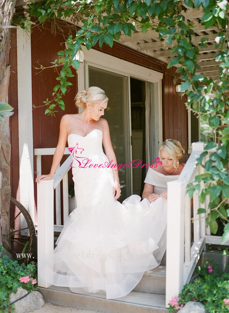 Lace Sweetheart Mermaid Bride Dresses with Ruffled Skirt