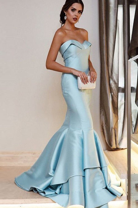 Light-blue Mermaid Style Evening Dresses with Fold Strapless