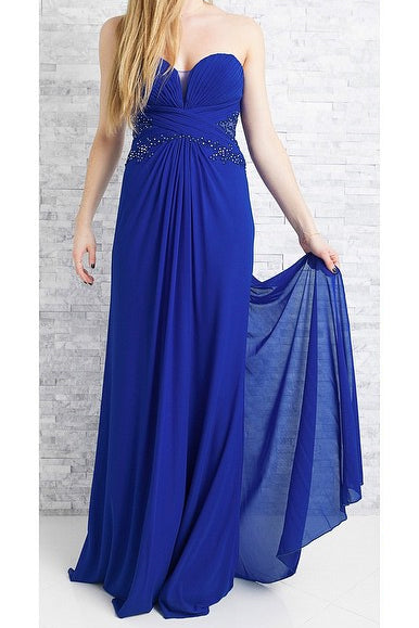 Pleat Sweetheart Chiffon Royal Blue Prom Long Dresses Backless