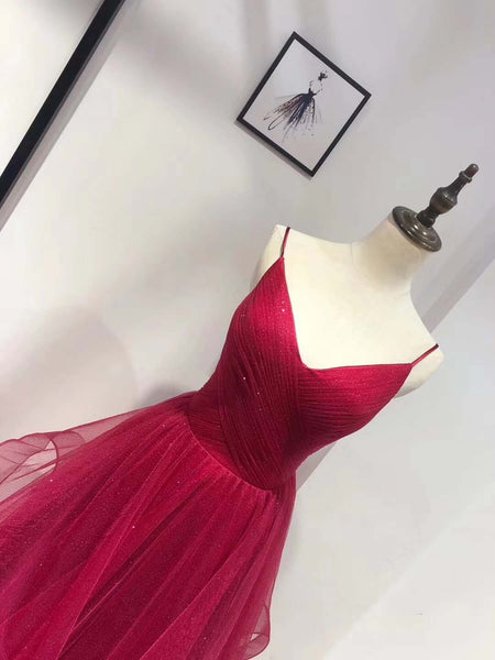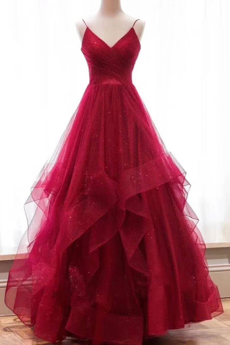 Pleated V-neckline Tulle Prom Dress with Horsehair Layered Skirt