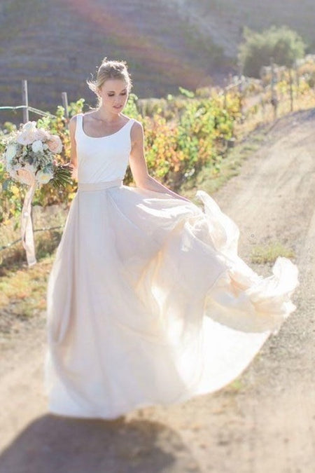 Sleeveless Rustic Wedding Dresses with Chiffon Skirt
