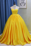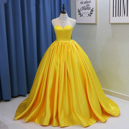 Sweetheart Yellow Prom Ball Gown with Satin Skirt
