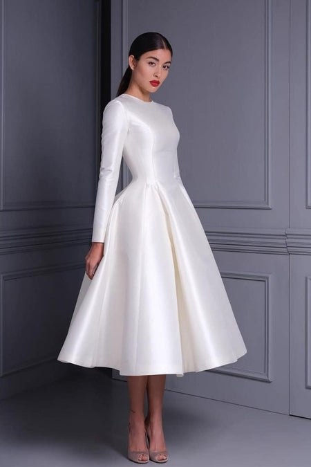 Women Modest Midi Wedding Dresses with Long Sleeves